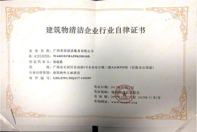 您的位置: 主頁  > 資質證書  > 建筑物清潔企業(yè)行業(yè)自律證書