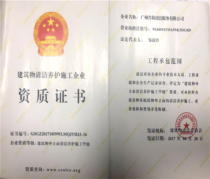 您的位置: 主頁  > 資質證書  > 建筑物清潔養護施工企業